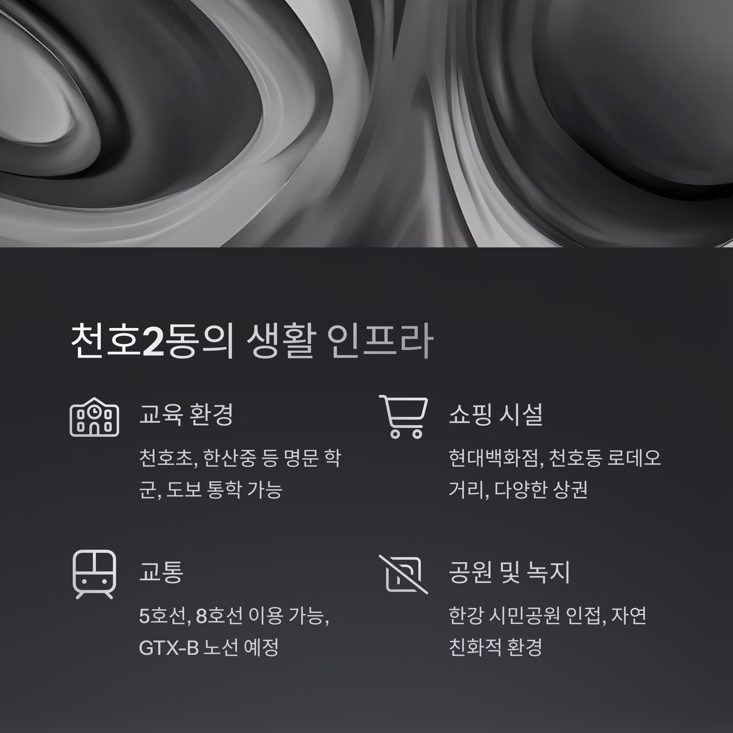 생활 편의성과 관련해 천호2동은 다양한 혜택이 있는 지역입니다.