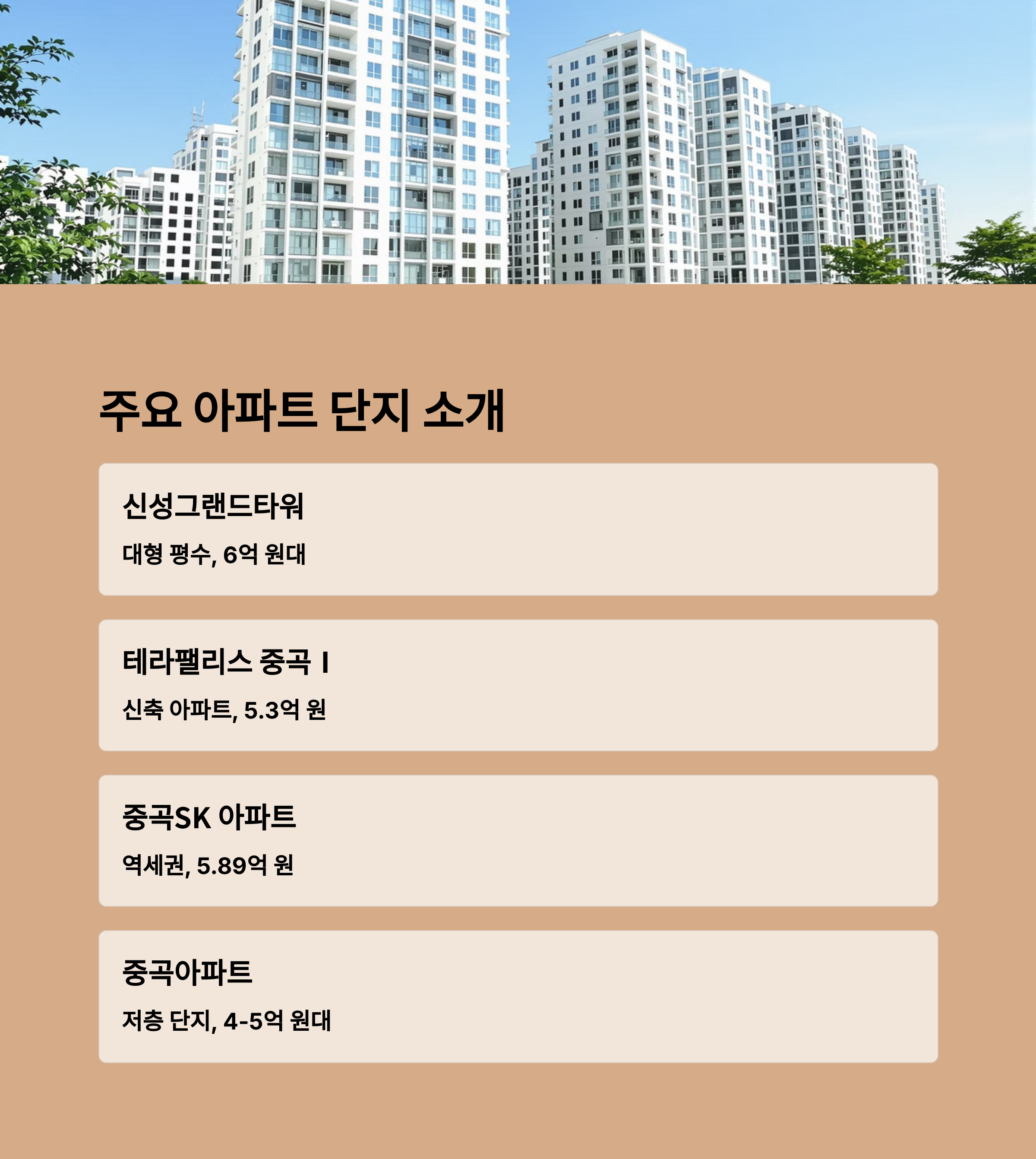 1. 주요 아파트별 특징 및 매매가
