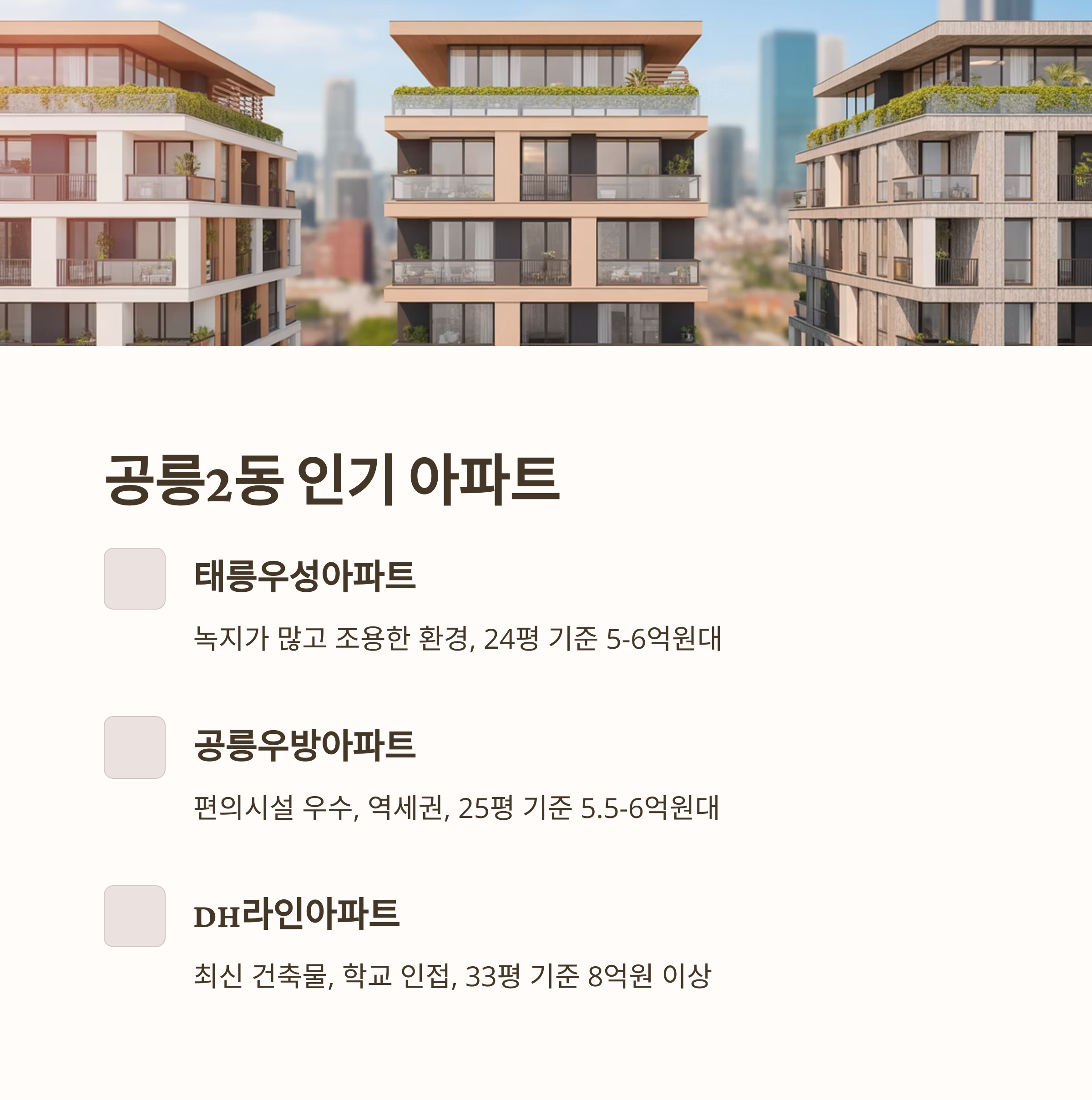 1. 공릉2동 인기 아파트 순위 및 주요 아파트 소개