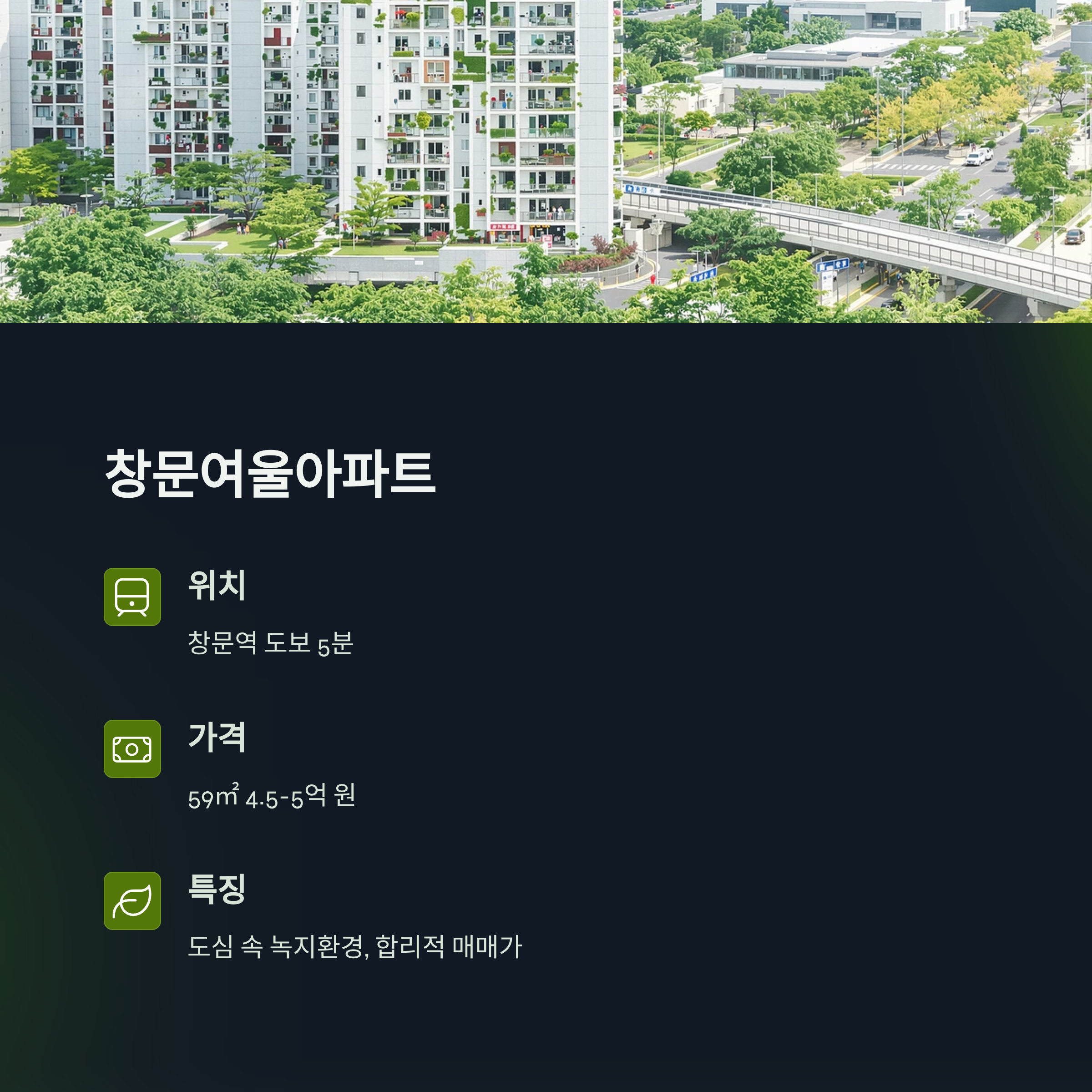 • 가격 경쟁력: 다른 인기 지역보다 매매가가 착한 편입니다.