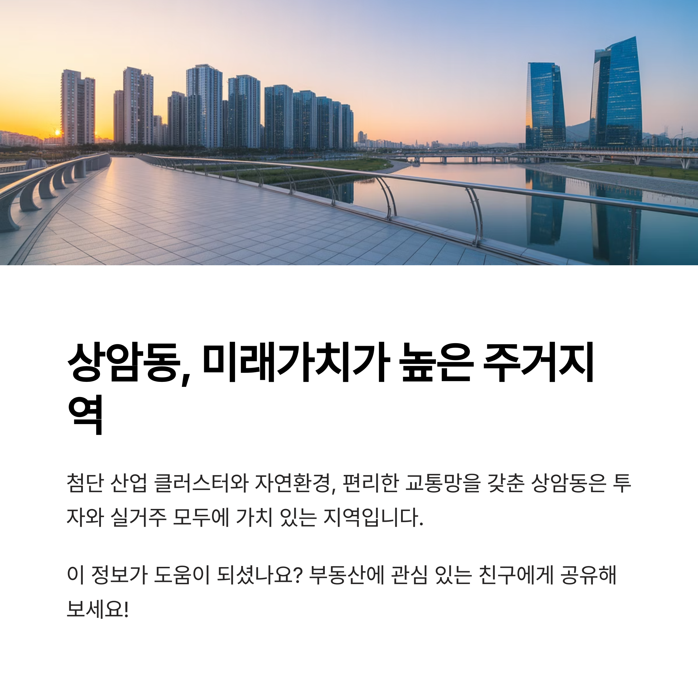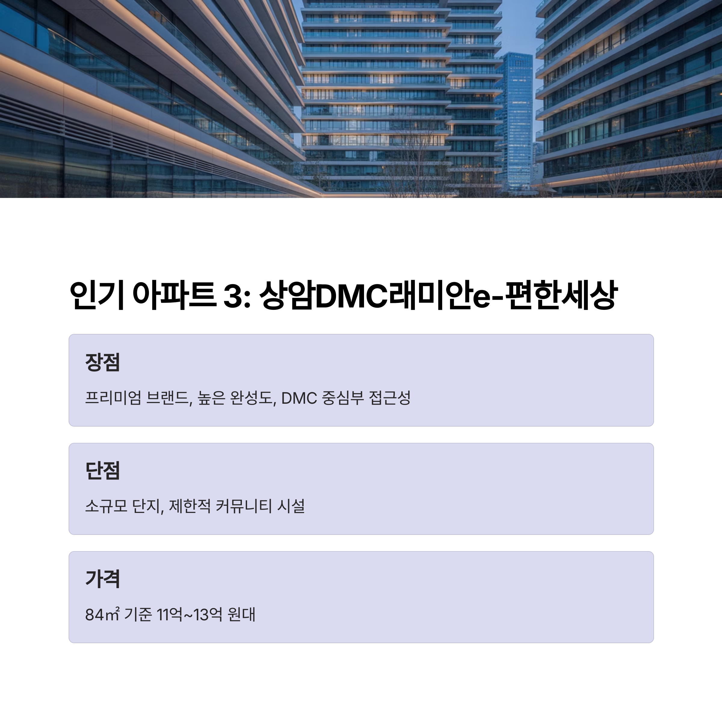 마포구 상암동은 첨단 IT·미디어 클러스터와 자연환경, 편리한 교통망을 두루 갖춘 매력적인 주거지역입니다. 관심도가 높은 주요 아파트들의 매매가와 장단점을 분석하면서, 상암동 아파트 매매의 가치를 한눈에 확인할 수 있었습니다. 안정적인 입지와 향후 발전 가능성을 고려했을 때 상암동은 지금도, 앞으로도 부동산 투자와 실거주 모두에서 가치 있는 지역으로 평가됩니다."