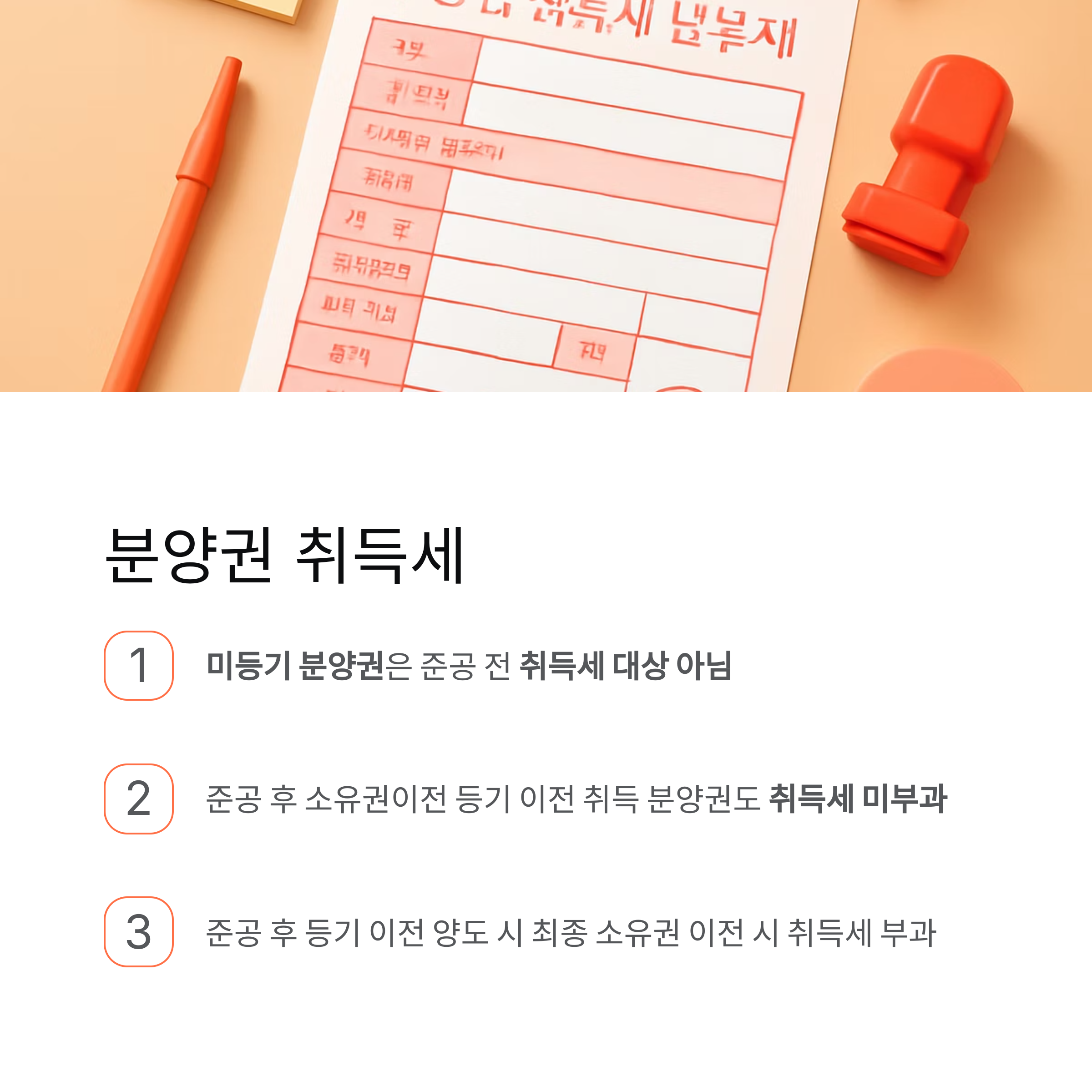 • 분양권은 취득세 대상이 아니지만, 양도·보유 전략 따라 세금 발생 가능