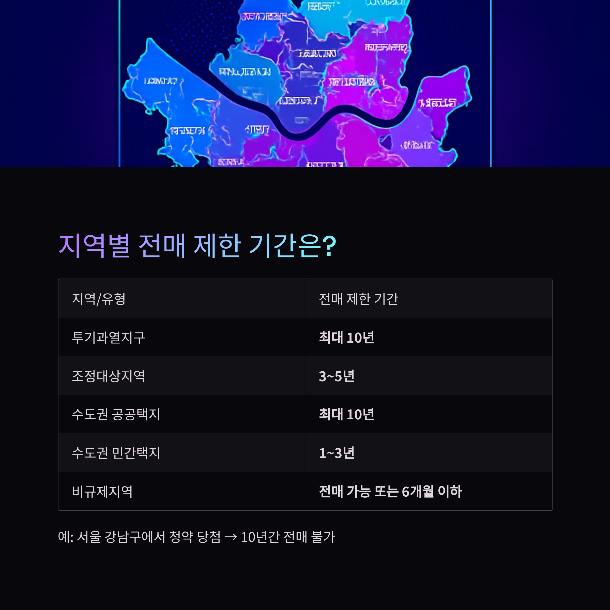 예: 서울 강남구에서 청약 당첨 → 10년간 전매 불가