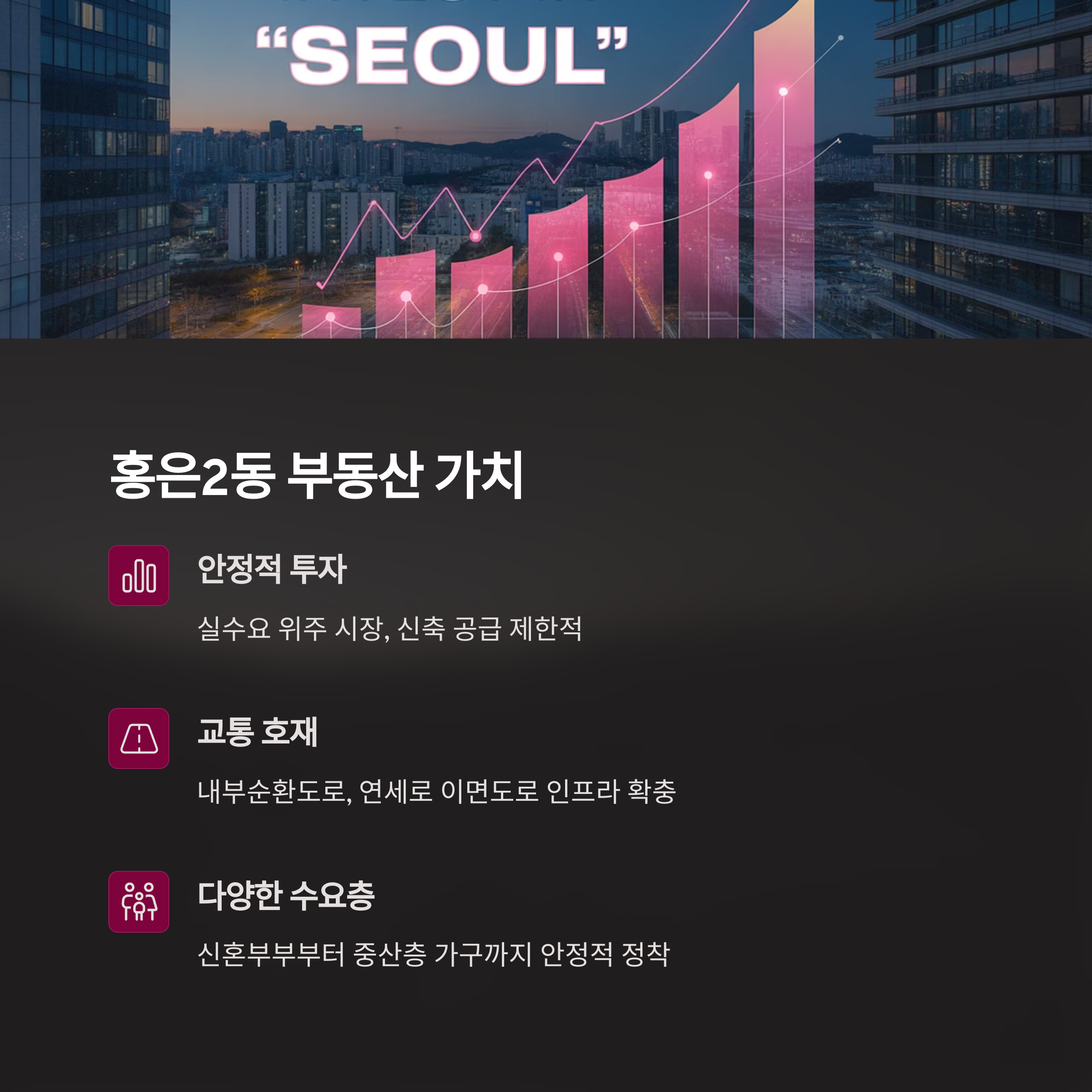 결론적으로, 서대문구 홍은2동 아파트 매매는 주거와 투자를 모두 고려하는 분들에게 추천할 만한 선택지입니다. 브랜드 아파트와 자연 친화적 환경을 갖춘 홍은2동의 매력은 앞으로도 더 많은 사람들에게 사랑받게 될 것입니다."