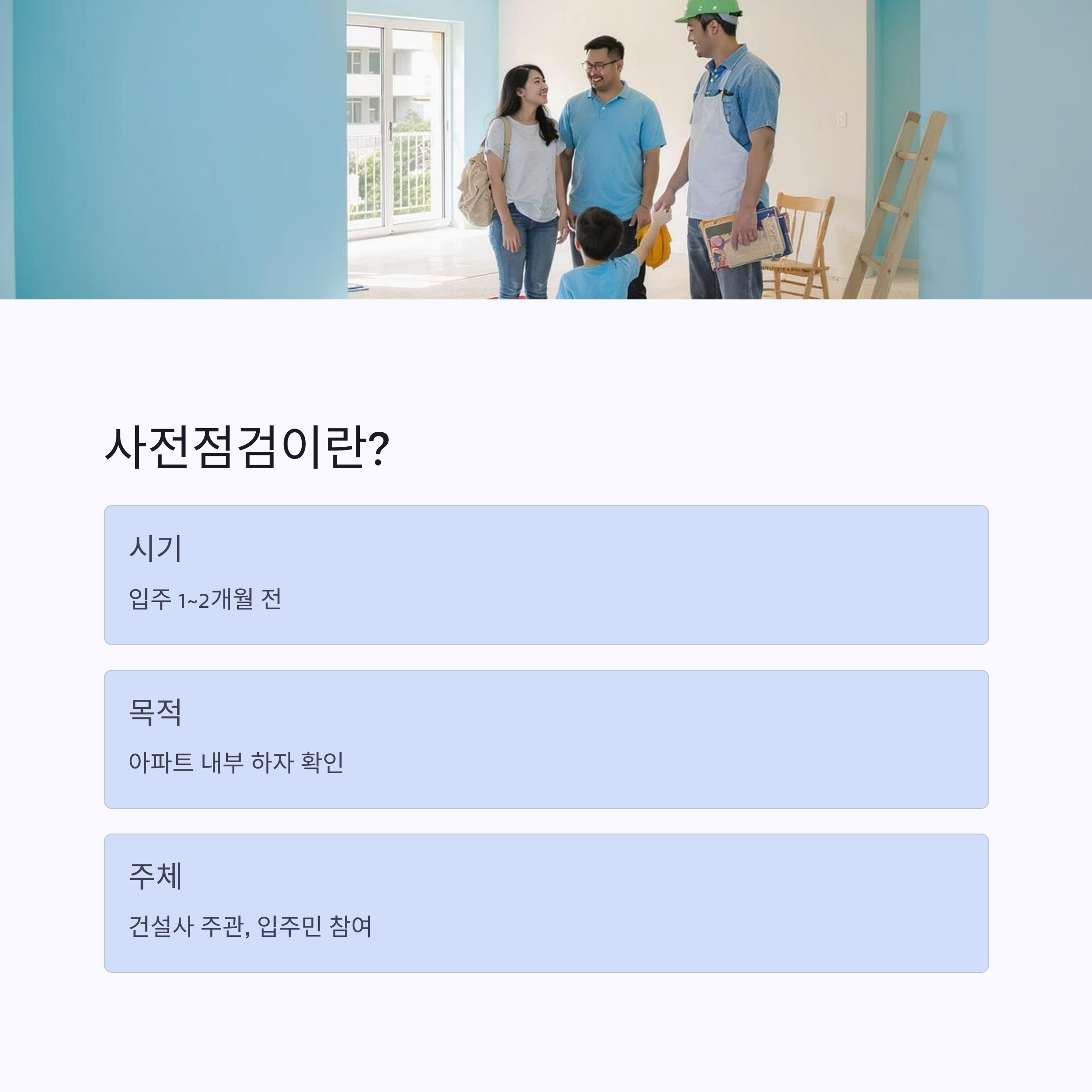 - 사전점검에서 하자를 놓치면 입주 후 A/S 기간에만 보수 가능