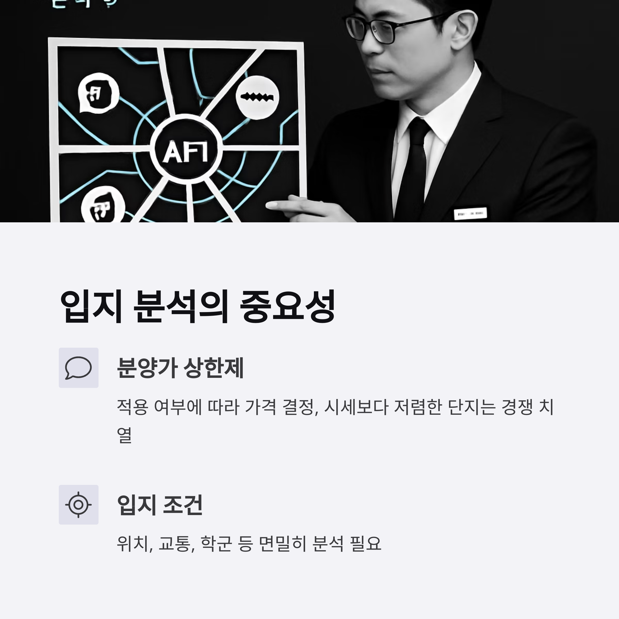 또한 분양가 상한제 적용 여부에 따라 아파트 가격이 결정되며, 시세보다 저렴하게 책정된 단지의 경우 청약 경쟁이 매우 치열합니다. 이에 따라 청약에 도전할 때는 해당 단지의 분양가, 위치, 교통, 학군 등 입지 조건을 면밀히 분석하는 것이 필요합니다. 아파트 청약하는 방법을 효과적으로 실천하기 위해서는 이러한 입지 분석이 중요합니다.