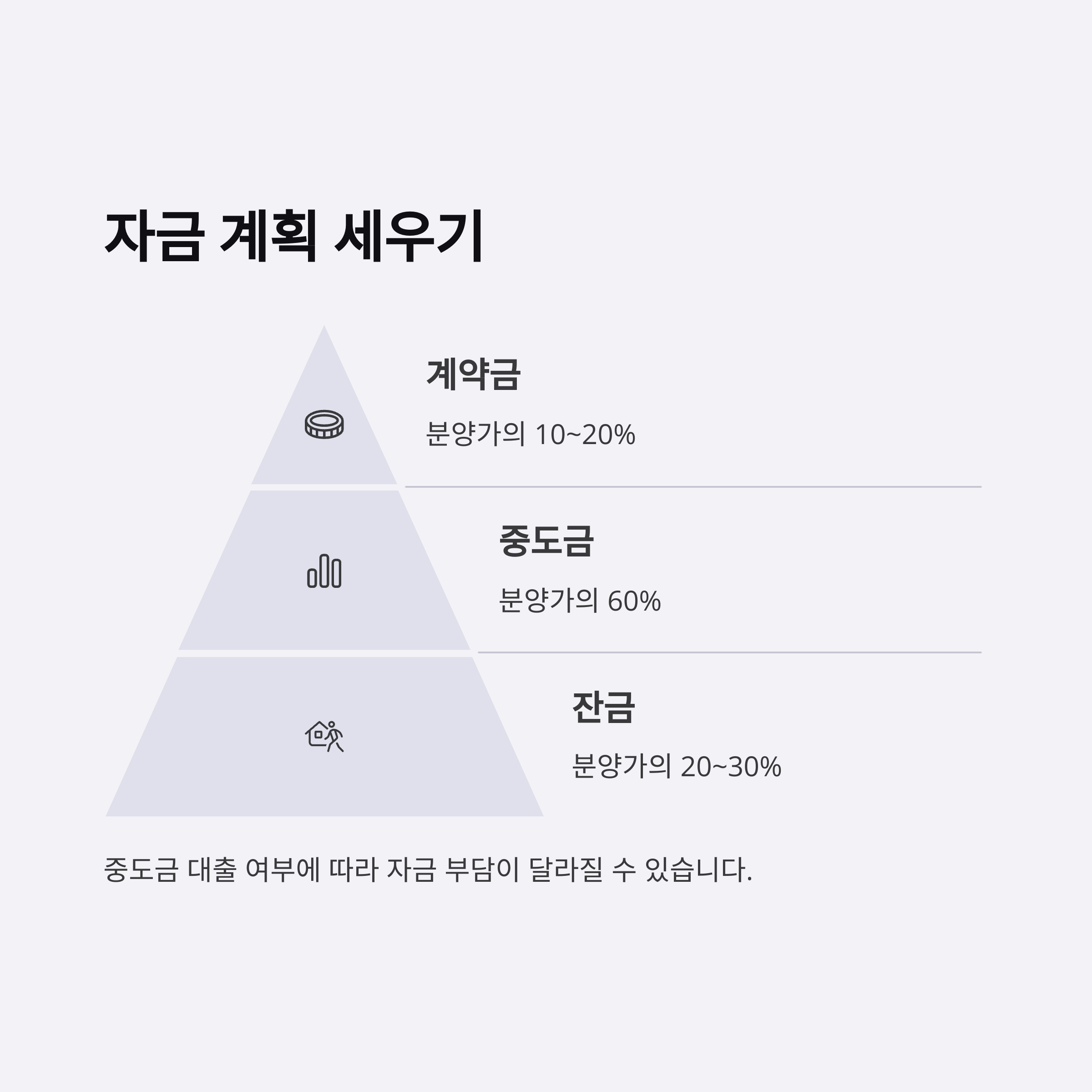 아파트 청약은 단순히 당첨되면 끝나는 것이 아닙니다. 당첨 이후에는 계약금, 중도금, 잔금 등을 순차적으로 납부해야 하며, 자금 계획이 미흡할 경우 계약을 포기해야 하는 상황이 생길 수도 있습니다. 일반적으로 계약금은 분양가의 10~20%, 중도금은 60%, 잔금은 20~30% 수준이며, 중도금 대출 여부에 따라 자금 부담이 달라질 수 있습니다. 이는 아파트 청약하는 방법 중 자금 계획 단계에 해당합니다.