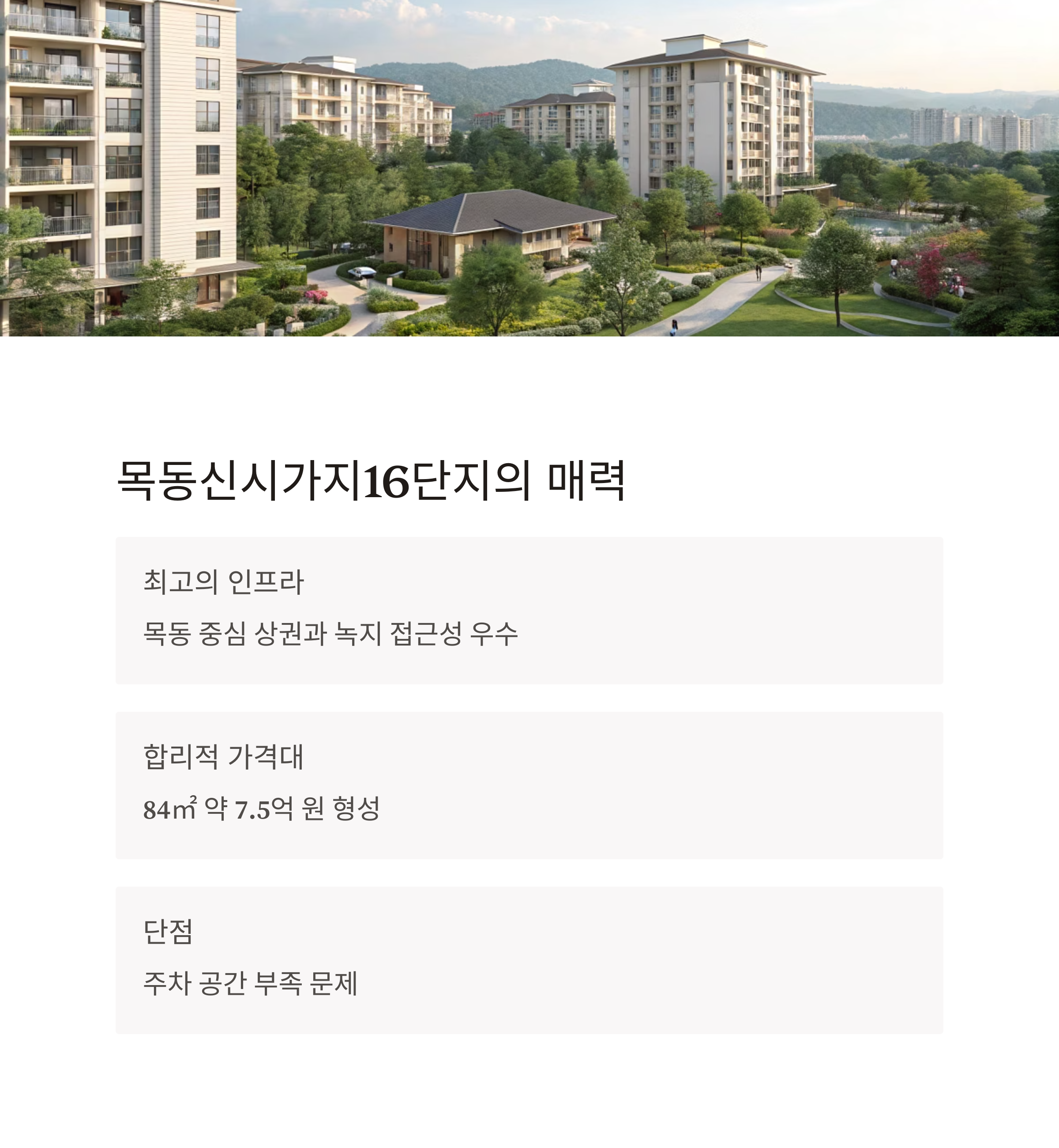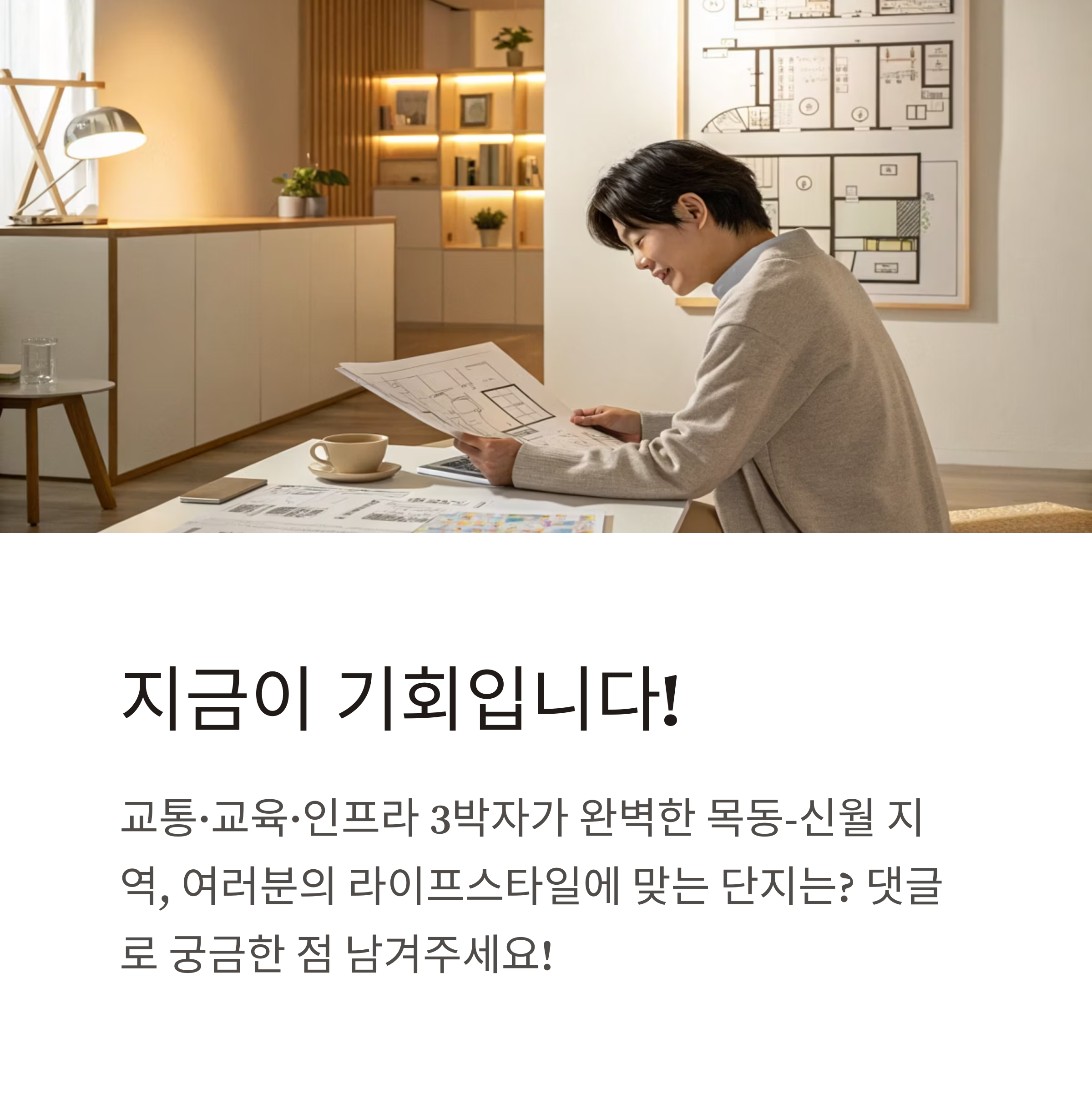 지금이 기회라고 할 수 있겠죠? 양천구 신월4동 아파트 매매를 고민하신다면 여러 단지를 비교해보며 조건에 맞는 선택을 해보시길 바랍니다!"