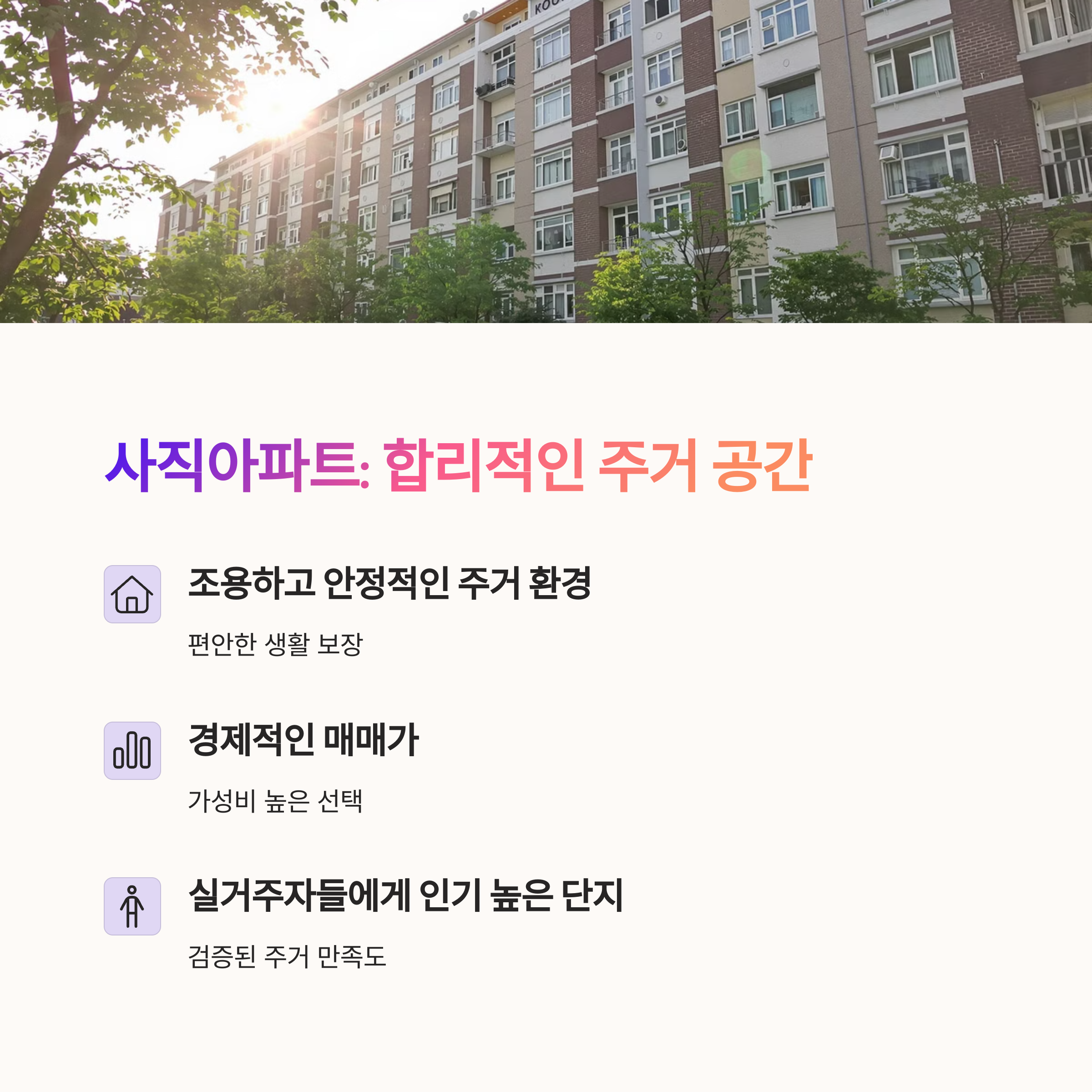 | 풍부한 역사적·문화적 자산 | 일부 오래된 아파트는 내부 시설 노후화 |