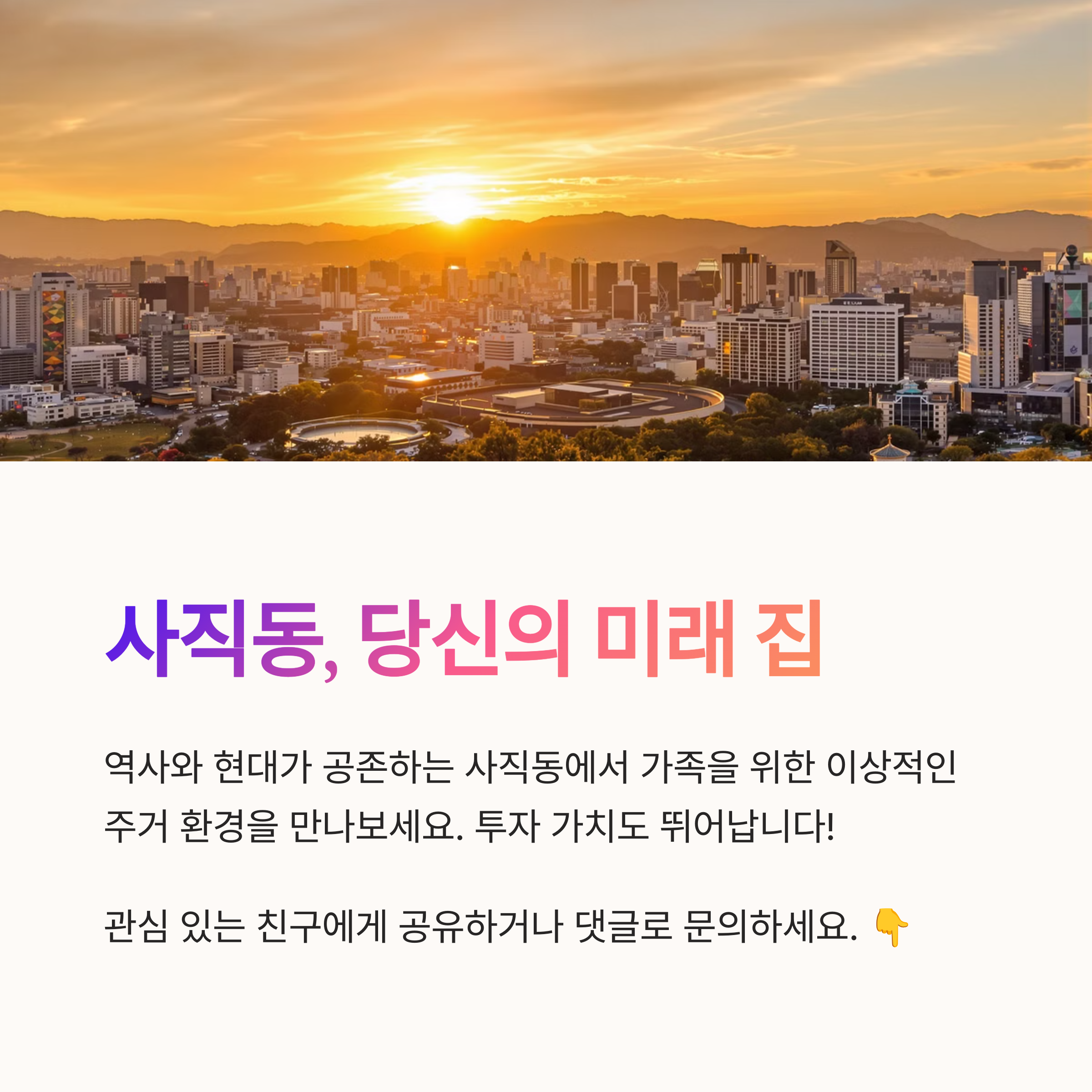 서울 종로구 사직동은 역사와 문화가 어우러진 지역으로, 경복궁과 청와대, 북촌 한옥마을 등 주요 관광지가 인접해 있습니다. 이 지역은 고급 주거 환경과 편리한 교통, 다양한 생활 편의시설을 제공하며, 특히 아파트 매매 시장에서 꾸준히 인기를 끌고 있습니다. 이번 포스팅에서는 "종로구 사직동 아파트 매매"를 중심으로 주요 아파트 단지별 특징과 가격, 주변 상권 및 생활 환경을 소개하겠습니다.