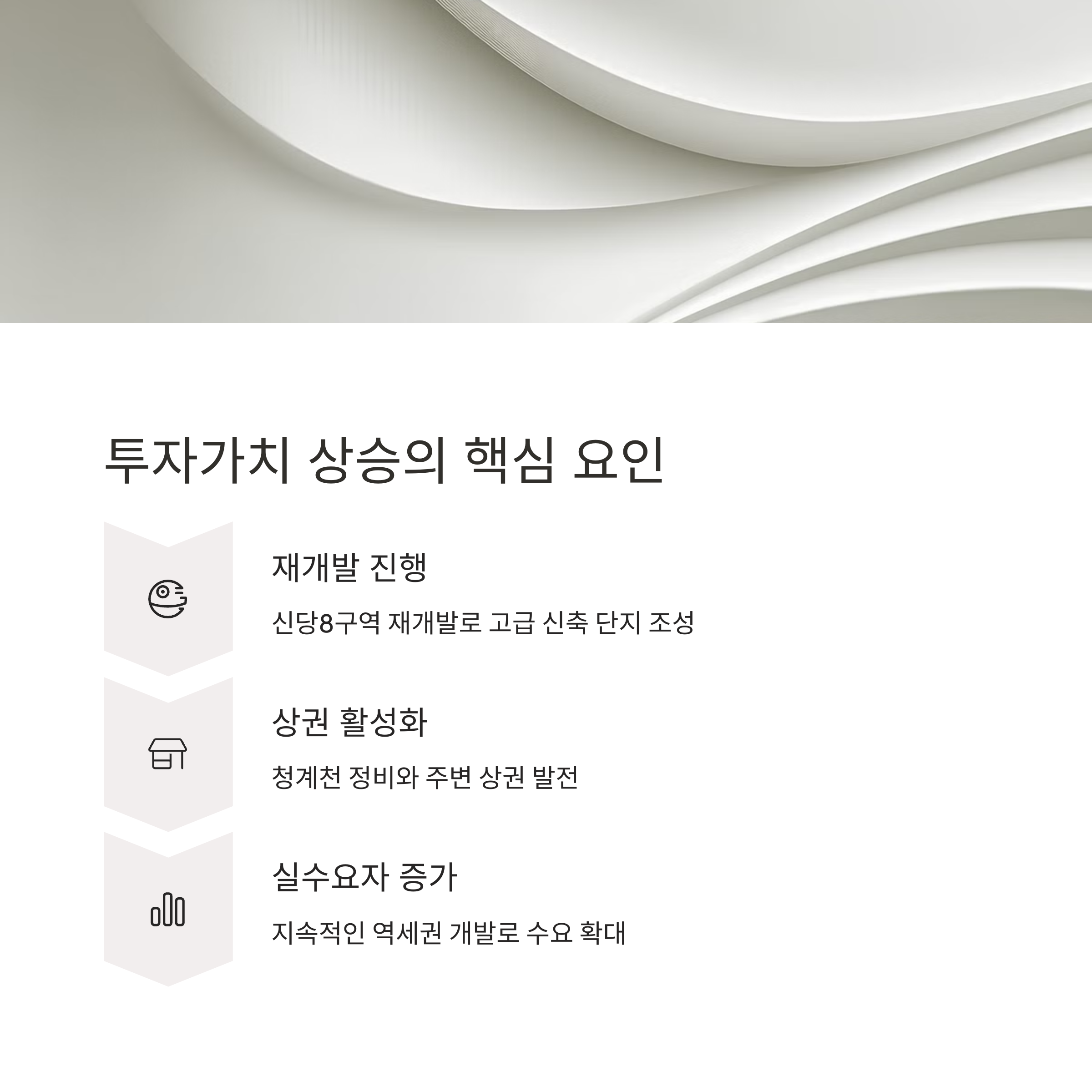중구 신당동은 서울의 중심부라는 입지적 장점 외에도 다양한 개발 호재와 정책적 지원으로 부동산 가치를 더욱 키워가고 있습니다.