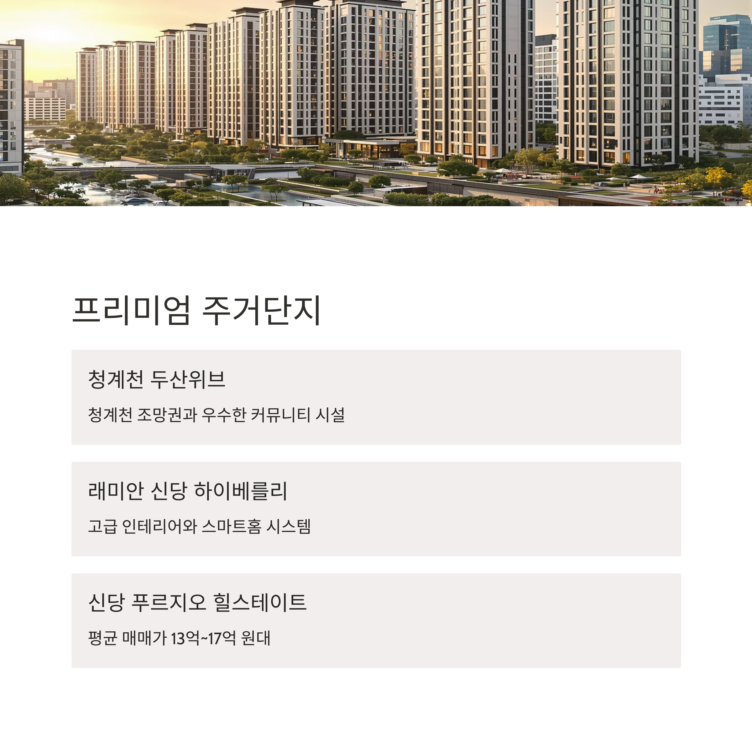 중구 신당동에서 특히 수요가 높은 아파트들은 그만큼 뛰어난 입지 조건과 다양한 생활 편의성을 자랑합니다. 인기 순위로 살펴보면 다음과 같습니다.